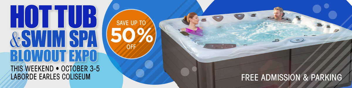Hot Tub & Swim Spa Blowout Expo This Weekend, October 3 - 5, 2025 Laborde Earles Coliseum: The Entertainment Center Hours: